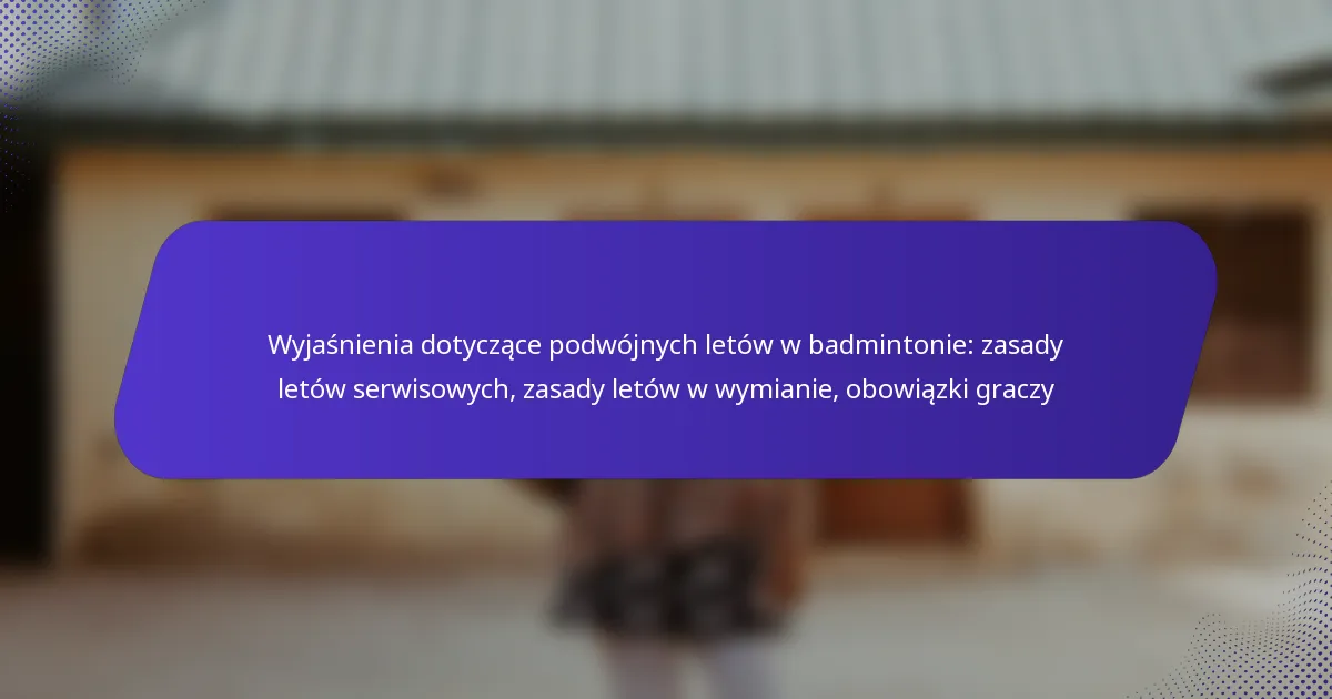 W deblu w badmintonie zawodnicy muszą być świadomi swoich obowiązków w sytuacjach let, które występują, gdy gra jest przerywana z powodu nieprzewidzianych okoliczności. Jasna komunikacja i szybkie działanie są niezbędne, aby zapewnić sprawiedliwą grę i utrzymać płynność gry.